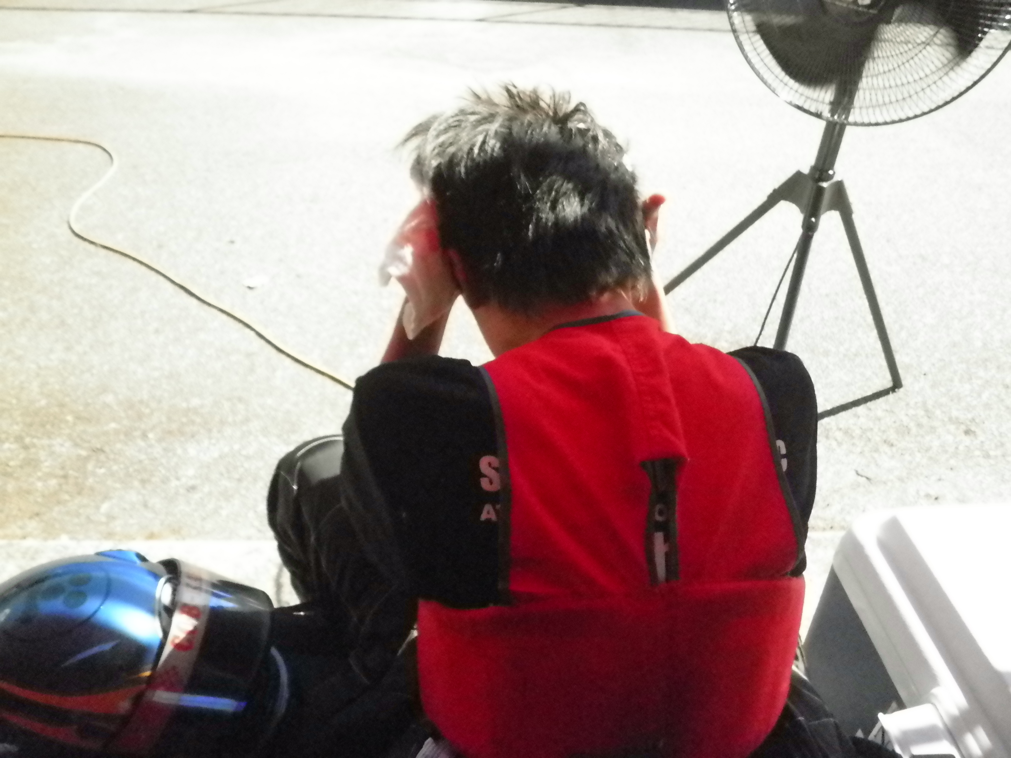 ヘルメットのまま会話