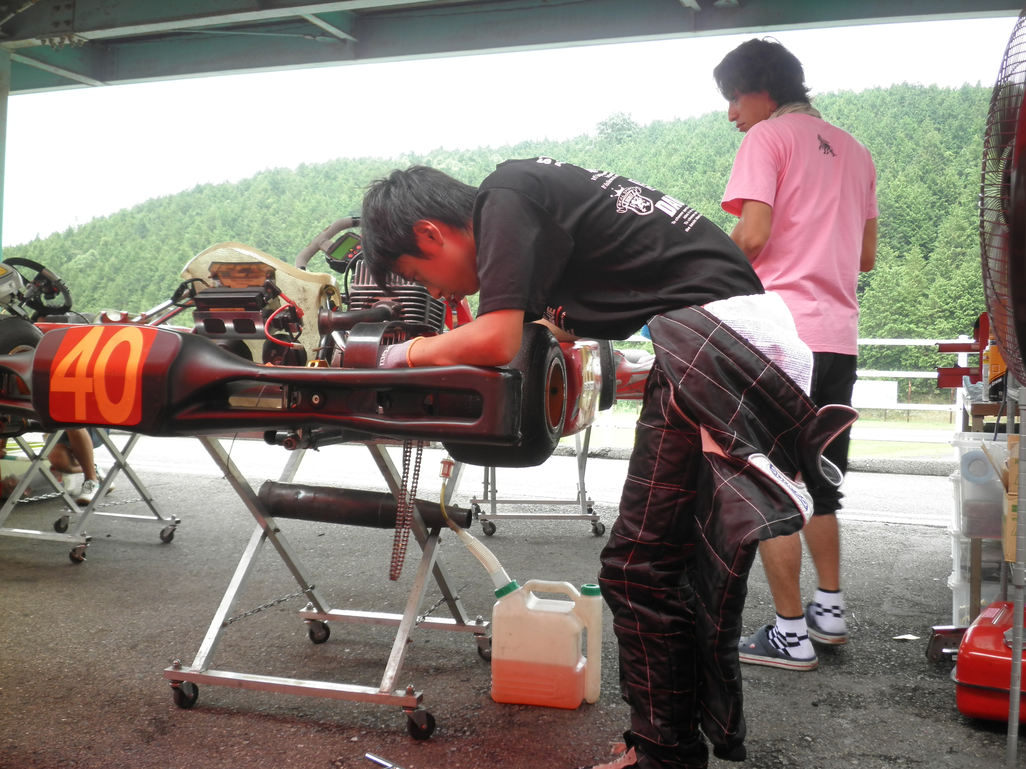 朝から僕のミスであまり、良い順位で予選に行けませんでした。 予選は、ストレートが伸びず、思わずブロックしてしまいました。 決勝は温存していたエンジンをお父さんと松永さんに出してもらって、追い上げていたんですけど、僕の気合いが入りすぎて、二回、プッシングしてしまい失格になってしまいました。 昨日はサポートしてくれた松永さん、親方さん、ノムさん